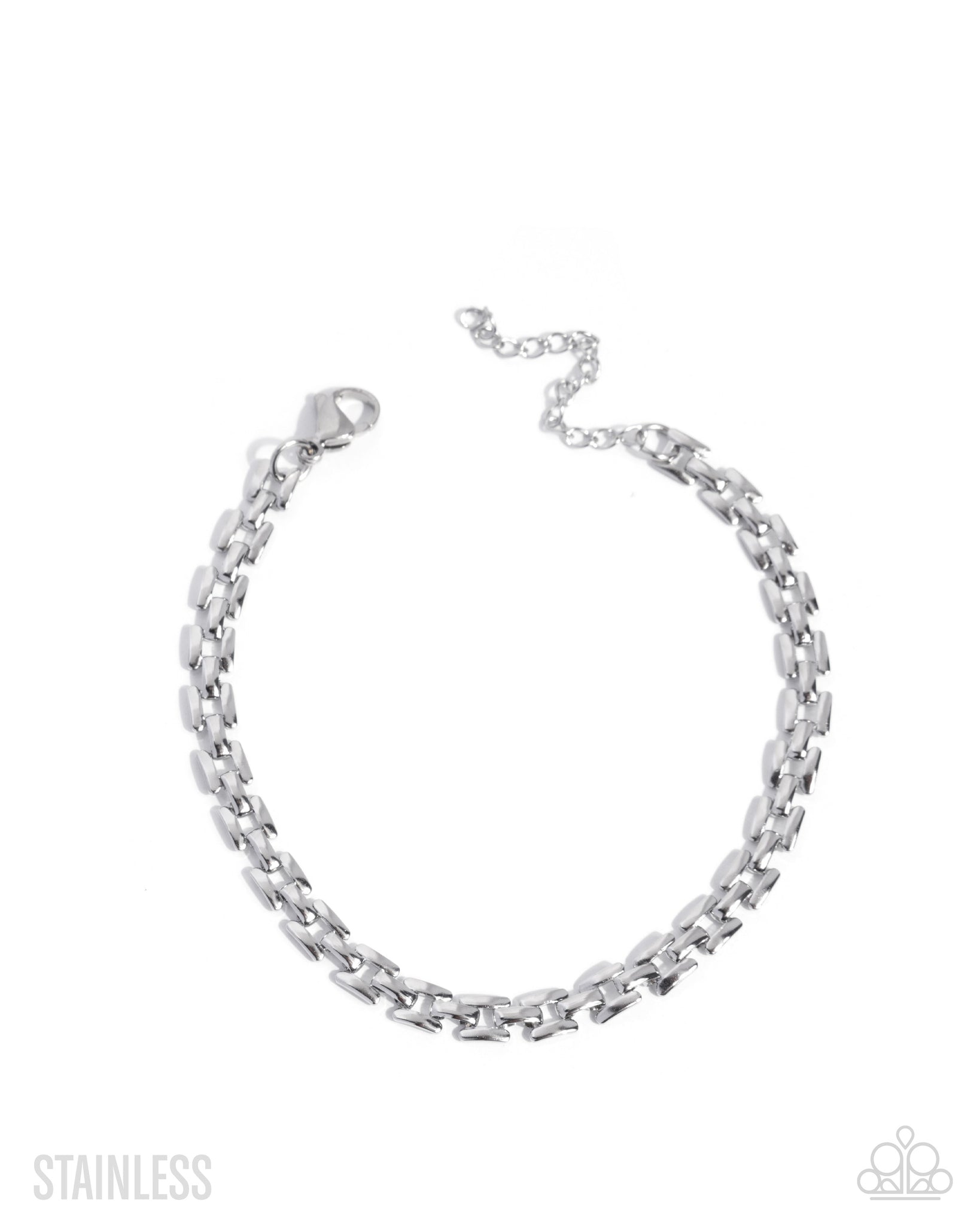 Featuring stainless steel, a collection of airy, widened silver rectangular links coalesces along the wrist for a dynamic, dramatic display. Features an adjustable clasp closure.