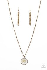 A dainty white firework-like flower is encased inside a glassy frame, creating a whimsical pendant below the collar. Features an adjustable clasp closure.