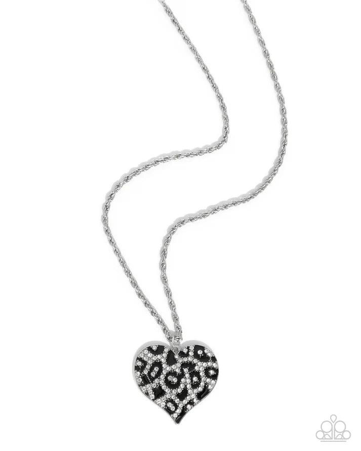 Featuring white rhinestone and black-painted Cheetah-inspired detailing, a silver heart pendant glides along a silver rope chain for a wishfully wild look. Features an adjustable clasp closure.