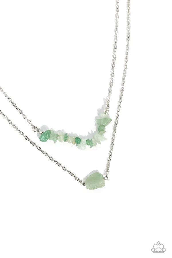 Chiseled into a natural collection, a layer of jade stones gives way to a large, solitaire jade stone pendant, creating earthy layers down the chest. Features an adjustable clasp closure. As the stone elements in this piece are natural, some color variation is normal.