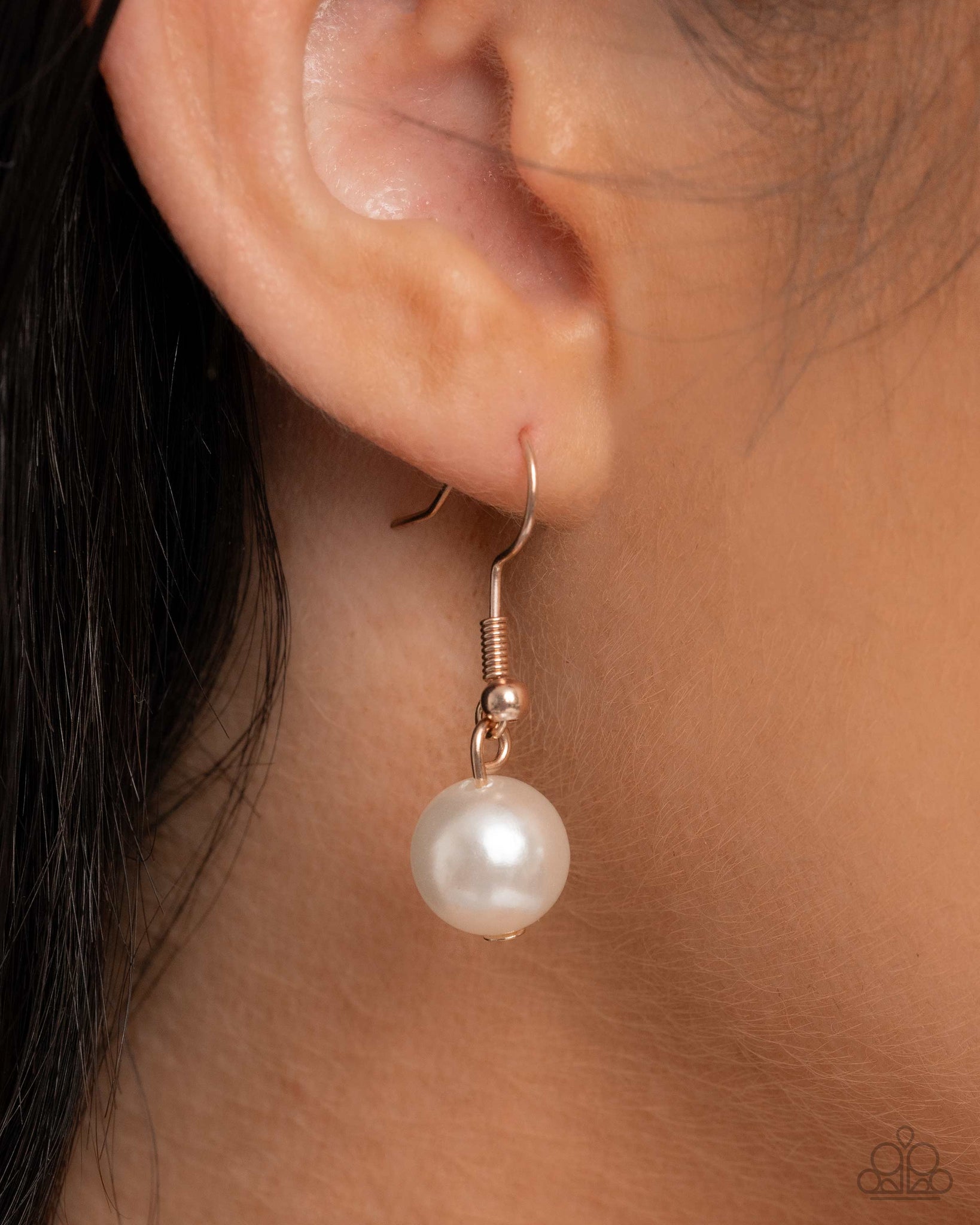 Infused along an elastic stretchy band, a collection of white pearls, rose gold rose-stamped beads, Golden Palm beads and discs in varying opacities, white discs, rose gold discs, and Desert Rose floral-patterned porcelain beads patterns around the wrist for a vintage pop of color and flair.