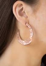 Delicately hammered in shimmery textures, an asymmetrical hoop curls around the ear for an edgy look. Earring attaches to a standard post fitting. Hoop measures 1" in diameter.