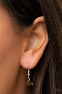Infused with a multicolored collection of natural stone beads and pebbles, stacks of textured silver charms and mismatched wooden beads create earthy tassels at the bottom of a silver beaded teardrop frame. Enhanced with a shiny white threaded tassel, the whimsical fringe swings from the bottom of an extended silver chain for a seasonal finish. Features an adjustable clasp closure.
